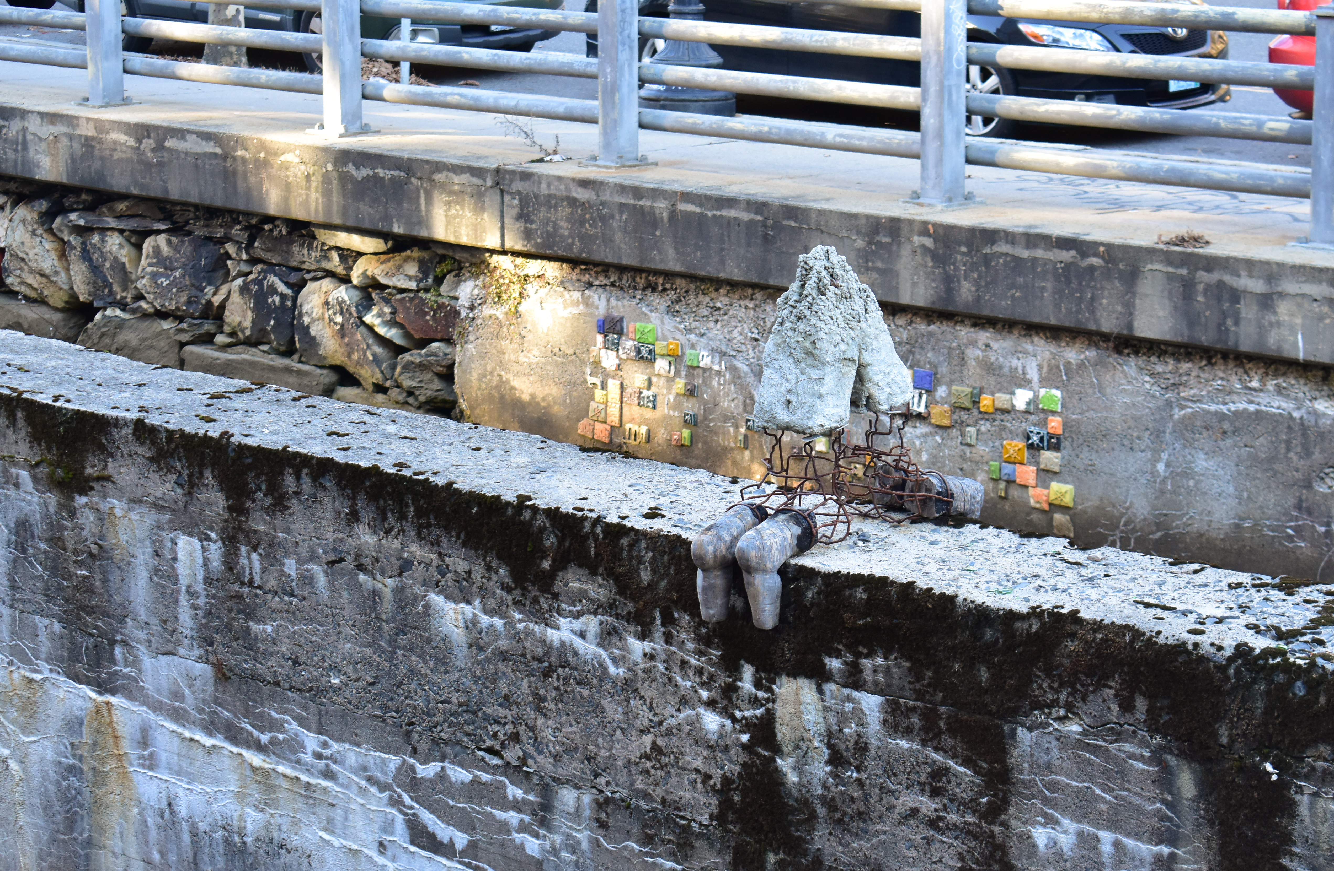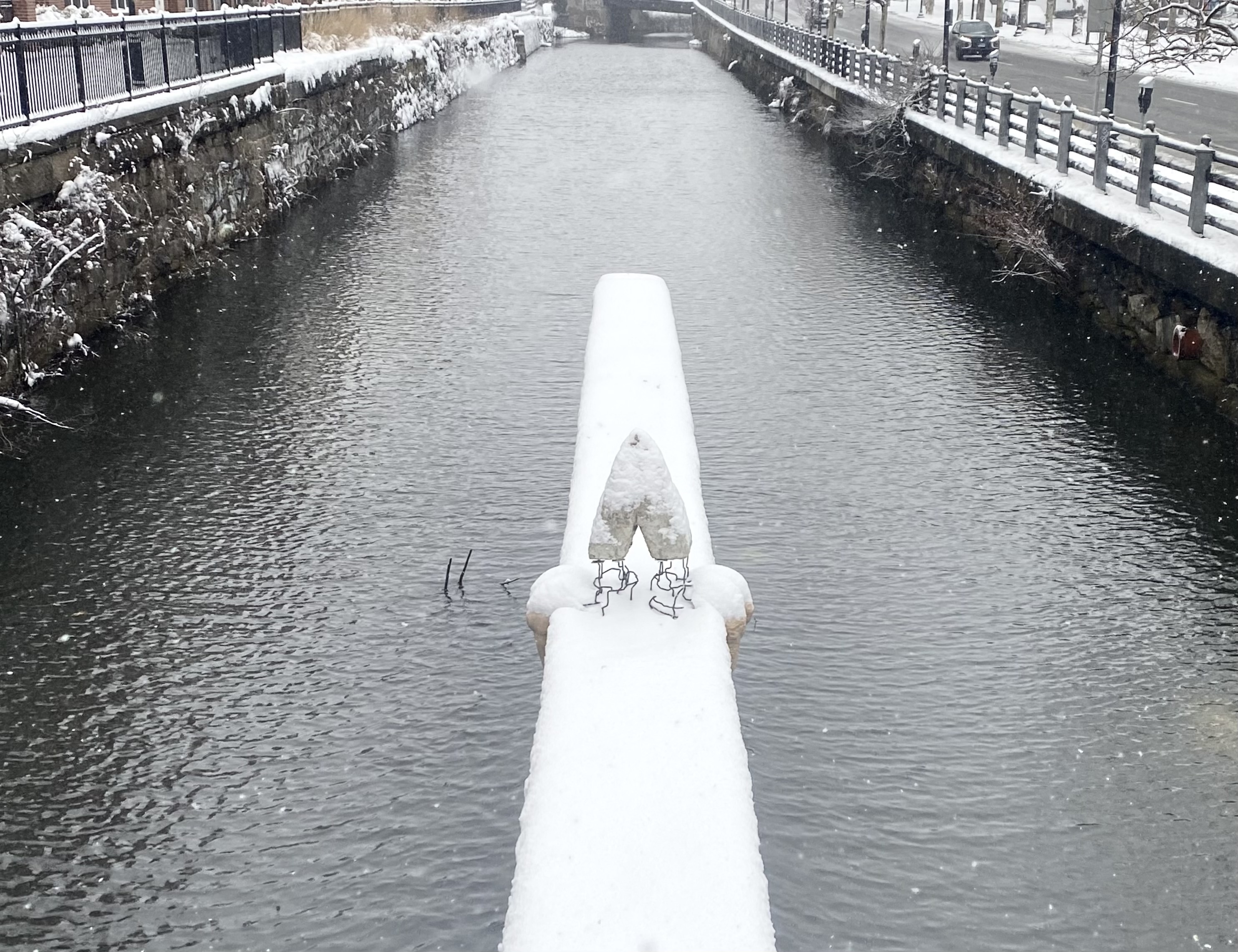 This site-specific installation was installed on a cement pylon in the Providence Canal in Spring of 2021, where it has since remained.