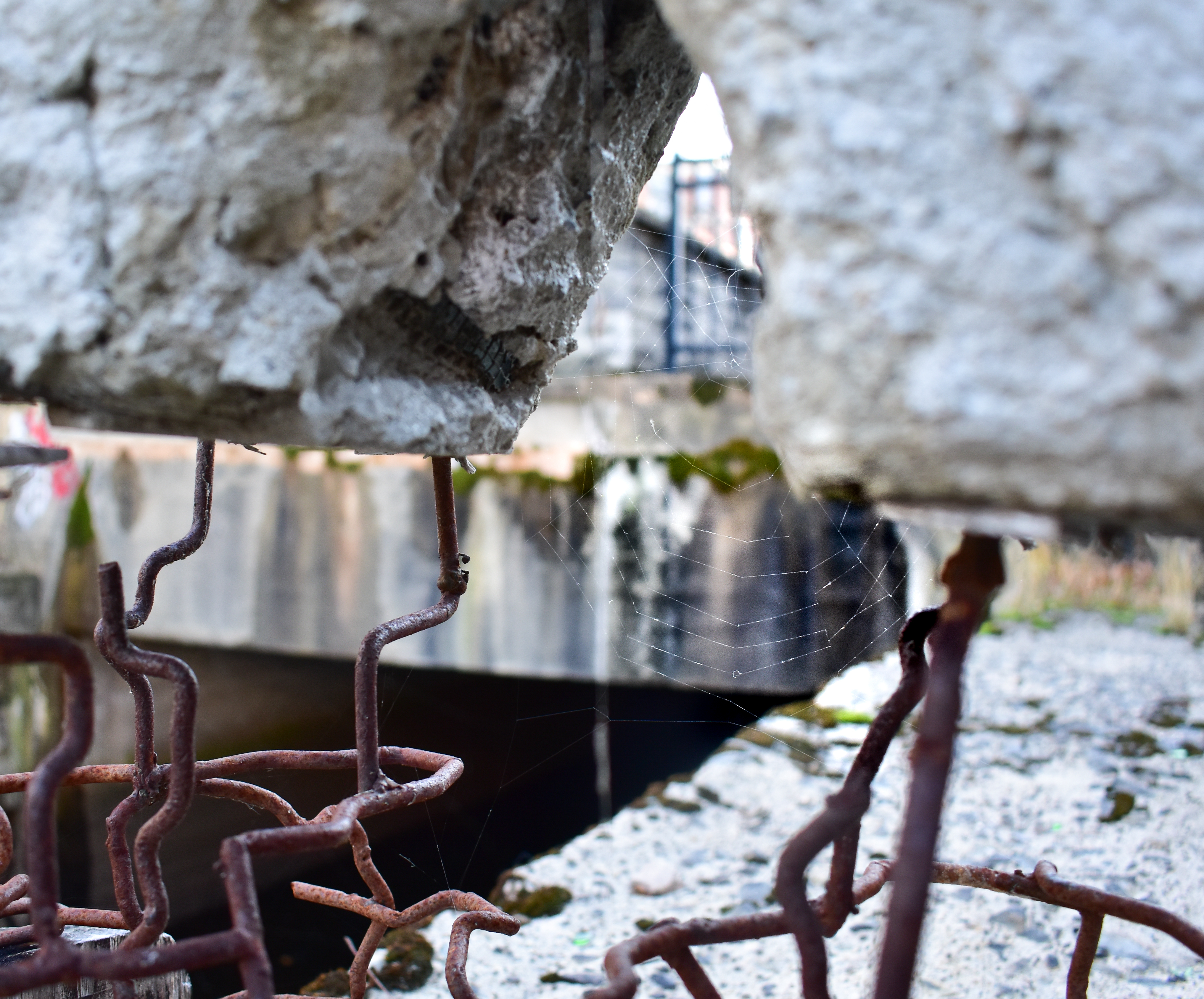 The piece uses materials found in industrial infrastructure and monument construction to examine the impermanence of memory, as explored through the form of a sand castle and the sculptures proximity to the changing tides of the canal.
